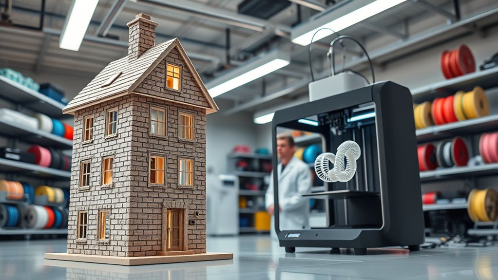 3D printing breakthroughs are transforming industries by enabling the quick creation of affordable homes and biocompatible organs. You can now design structures with less waste and produce complex, customized products efficiently. This technology also supports sustainable practices by reducing material use and transportation emissions. As innovations in bioprinting and sustainable fabrication continue, industries evolve rapidly. Keep exploring to discover how these advancements are shaping the future of building, healthcare, and more.