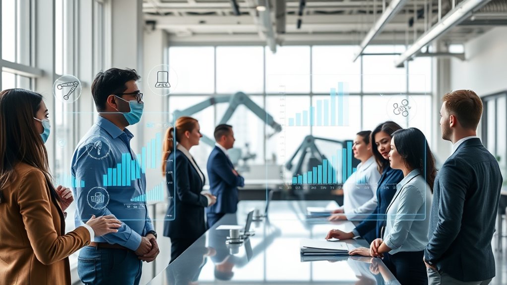 To stay ahead of AI-driven industry changes, you should focus on AI reskilling by learning new digital skills and understanding automation tools. Embrace continuous learning and seek out online courses, workshops, or certifications related to your field. Workforce adaptation is key, so stay informed about industry trends and be flexible to pivot into roles that complement AI technology. This proactive approach will help you remain valuable and competitive in evolving job markets.
