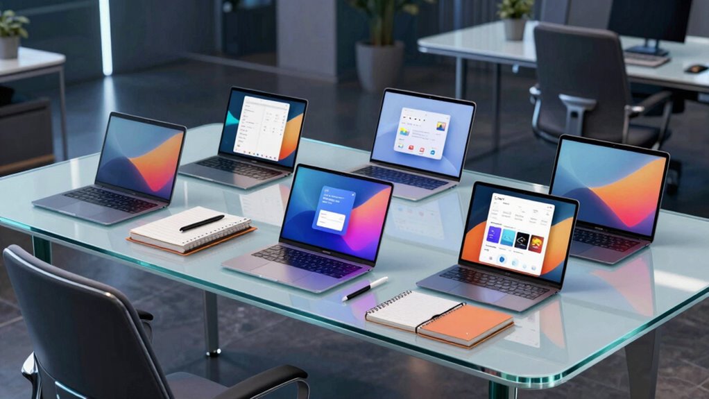 Imagine you’re in a conference, needing to take notes for hours without worrying about your device dying. I’ve found the HP Spectre x360 to offer some of the longest battery life, often lasting over 15 hours on a single charge. Its efficient power management and high-capacity battery make it perfect for extended use. If you need reliability during long work sessions, this notebook’s stamina won’t let you down.