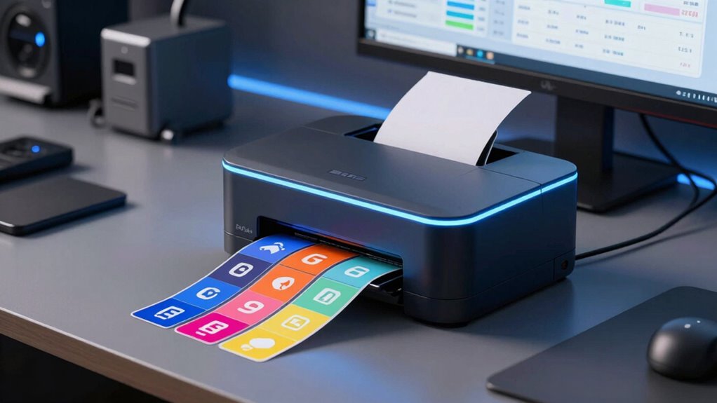 When selecting a label printer for your tech inventory, it’s important to take into account the ongoing costs of supplies, as these can greatly influence your budget over time. Thermal printers generally require only thermal label paper, which costs between $10 and $30 per roll, depending on size and quality. Since they don’t need ink or toner, their ongoing expenses are lower compared to inkjet or laser printers. For high-volume printing, fanfold labels offer a more cost-effective option but may require specific printer compatibility. Keep in mind that specialized labels like waterproof or barcode labels tend to be more expensive, adding to your costs. Additionally, third-party suppliers often provide compatible labels, which can help reduce long-term expenses without sacrificing quality.