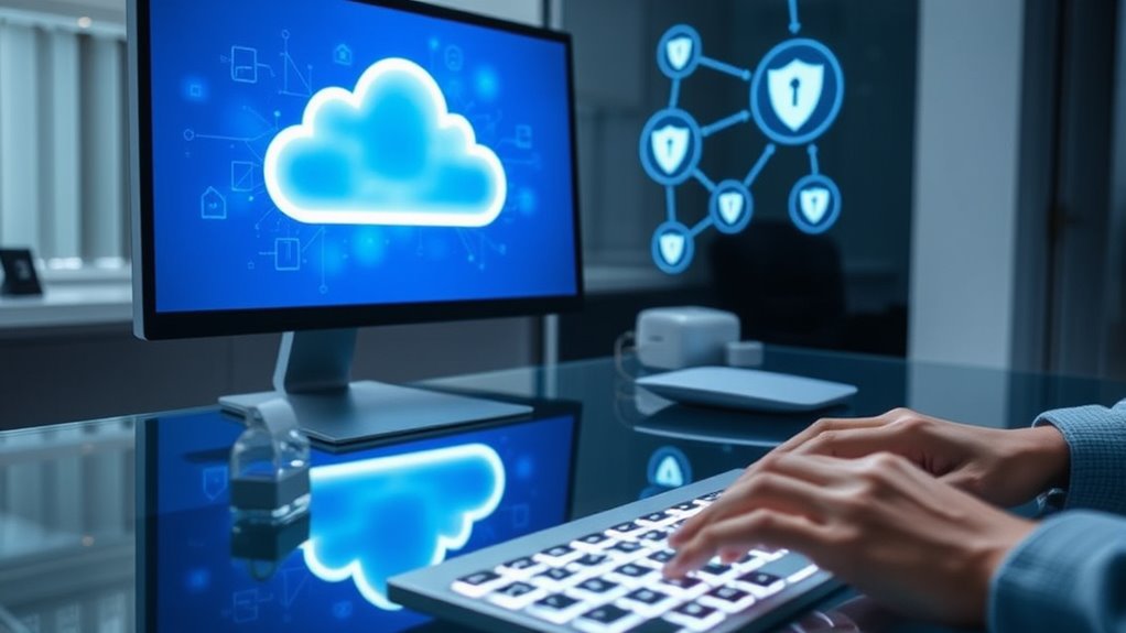 You might think encryption is just a layer of protection, but it’s actually essential for cloud security. Data encryption transforms your data into unreadable code using robust encryption protocols, ensuring only authorized users can access it. This process safeguards sensitive information during transmission and storage, preventing unauthorized access even if hackers breach the system. By implementing strong encryption, you markedly bolster your cloud data’s security and maintain your trustworthiness.