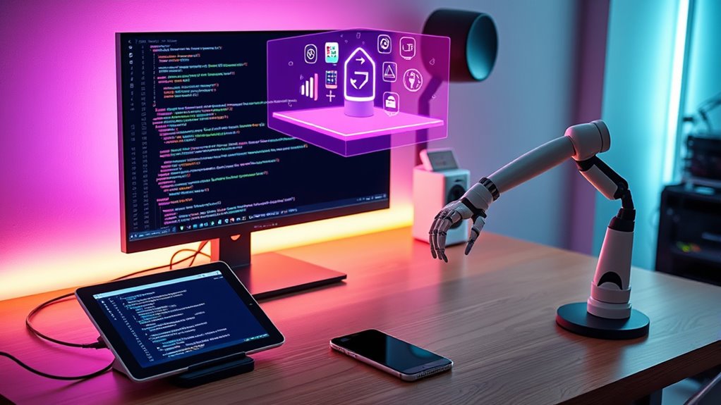 By 2026, AI integration will revolutionize cross-platform development tools through AI automation and user personalization. You’ll find these tools automate repetitive tasks, speeding up development, while offering tailored experiences for users. This means you can deliver more efficient, personalized apps across multiple platforms effortlessly. AI’s capabilities will enhance your workflows, allowing you to focus on innovative features and user engagement, ultimately making your apps smarter and more adaptable.