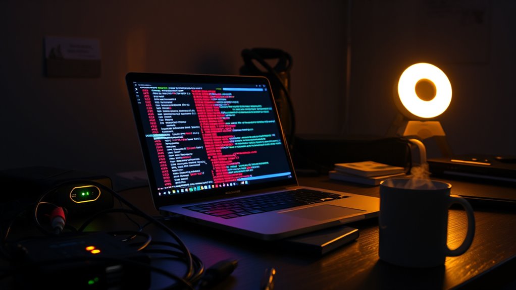 Have you ever wondered how hackers secretly mine cryptocurrency using your computer? It might seem like something out of a spy novel, but it’s a real threat that’s happening more often than you think. The main tools hackers use are mining malware and browser cryptojacking. These methods allow cybercriminals to hijack your device’s resources without your knowledge, turning your computer into a part of their mining operation. Mining malware is malicious software that infiltrates your system, often disguised as legitimate files or hidden within software downloads. Once inside, it quietly runs in the background, using your CPU or GPU power to mine cryptocurrencies like Bitcoin or Monero. The process can considerably slow down your device, drain your energy, and even cause overheating, all while you remain unaware of what’s happening. Techniques such as digital sound synthesis can be used to create convincing fake alerts or noises that distract users from suspicious activity.