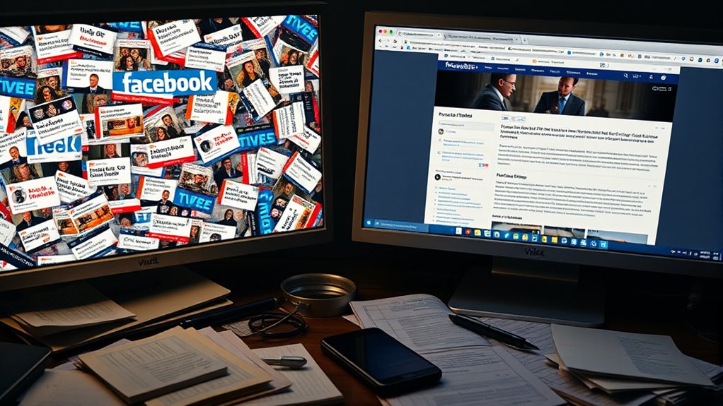 Algorithms influence the spread of fake news by amplifying content that triggers strong emotions, often leading to algorithm bias. They tend to reinforce echo chambers, where you only see information that aligns with your beliefs, making it easier for falsehoods to spread unchecked. This personalization boosts engagement but also limits exposure to diverse perspectives, increasing the risk that fake news becomes more widespread and harder to challenge.