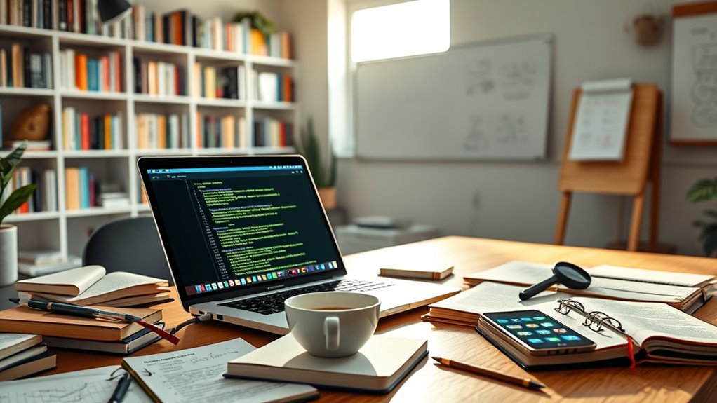 Reskilling in AI doesn’t have to drain your wallet—think of these free courses as your golden ticket to the tech world. By diving into hands-on projects and sharing your work on platforms like GitHub or Kaggle, you’re building a portfolio that shines brighter than a lighthouse in the fog. Stay committed, keep learning, and watch your skills blossom—proving that with the right tools, you can turn your passion into a powerhouse of opportunity.