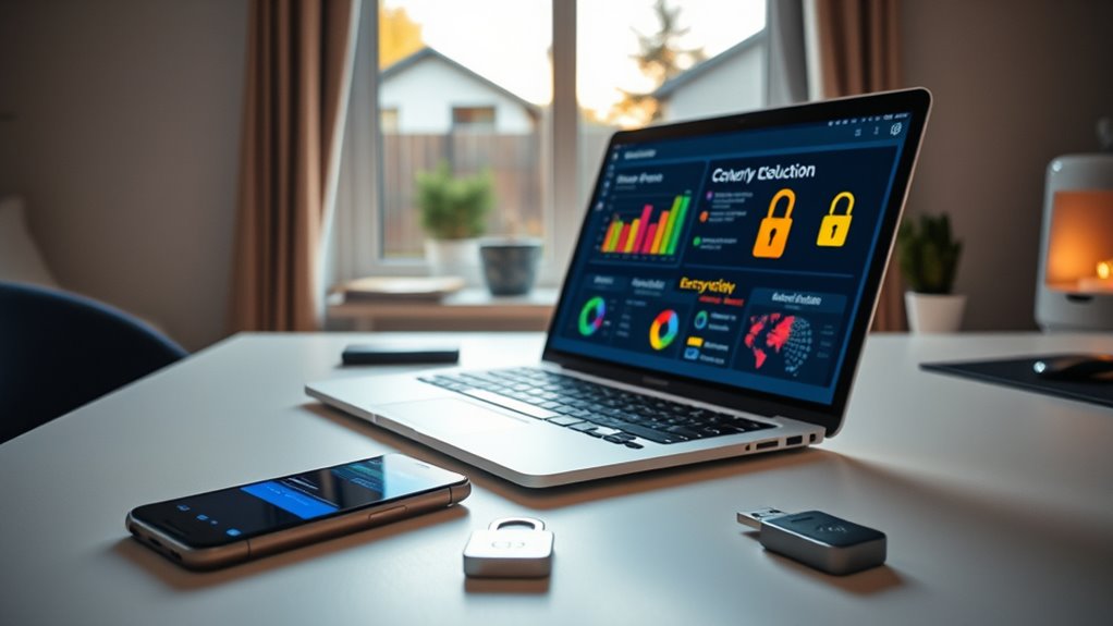 Did you know 81% of hacking-related breaches involve stolen or weak passwords? To secure your personal devices, enable device encryption to protect your data and regularly review app permissions to minimize access to sensitive information. Keep your software updated, use strong, unique passwords, and avoid clicking on suspicious links. These best practices help prevent unauthorized access and keep your personal information safe from cyber threats.