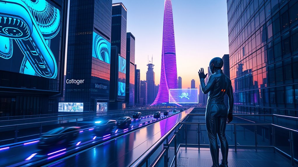Technologies once seen only in sci-fi movies are now part of everyday life. Virtual assistants understand your preferences, manage schedules, and control smart home devices. Autonomous vehicles use AI to navigate traffic and improve safety, giving passengers more relaxation or productivity time. AI integration makes environments smarter and more adaptive to your needs. As these innovations blur the line between fiction and reality, you’ll discover how these advancements continue transforming the way you live, work, and move—just keep exploring.