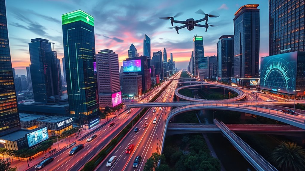 As you step into the future, remember that smart cities aren’t just about shiny tech—they’re about making your life easier and more connected. By 2025, these innovations will be as natural as breathing, transforming urban landscapes into vibrant, efficient communities. It’s like watching a symphony of progress come to life, where every note, every device, works in harmony to serve you better. Embrace this change, because the city of tomorrow is already knocking on your door.